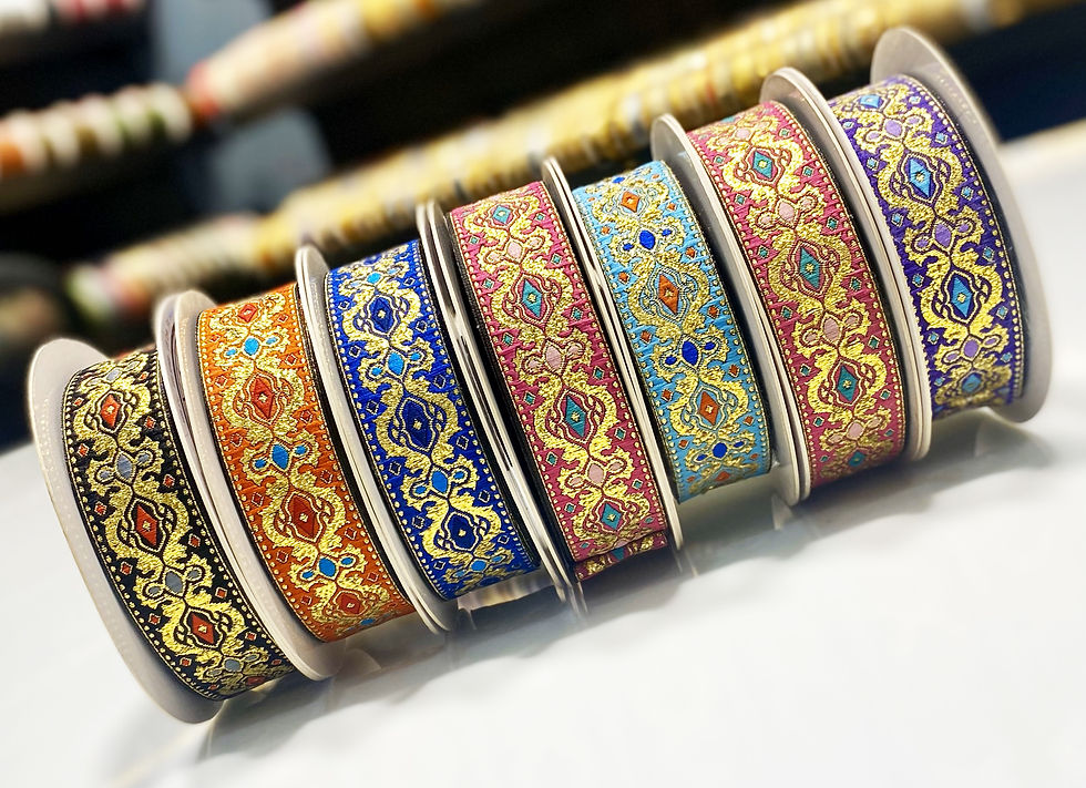 1" Satin Jacquard Ribbon with celtic pattern in colorways